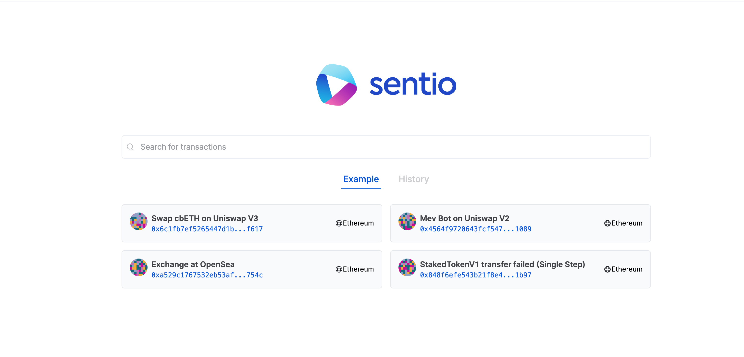 For each transaction, Sentio adds standard transaction metadata, and a link to the block explorer page on the Overview tab.