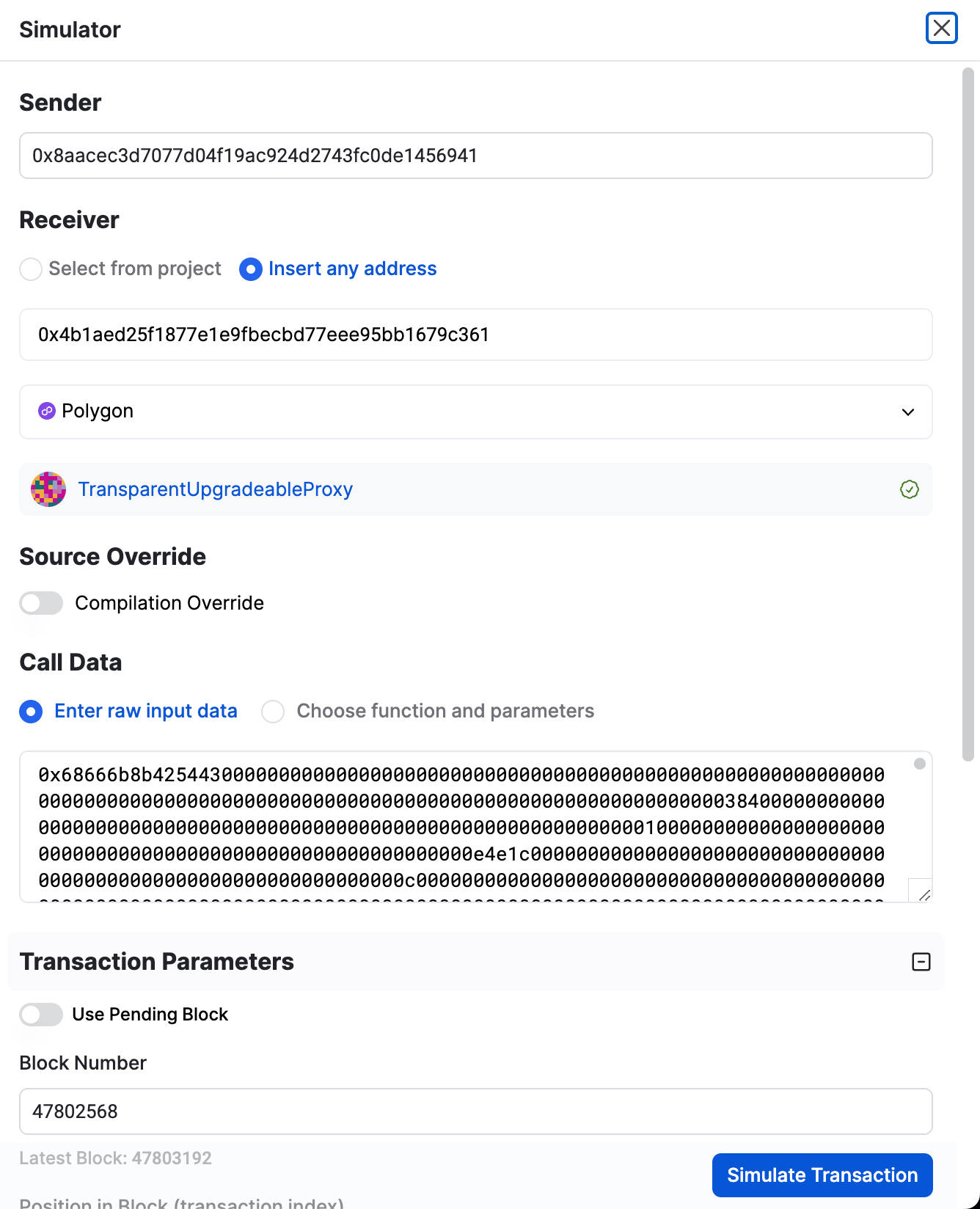 Click the simulate transaction button will save this run to the simulation history of your project and show you the result, just like what you see from the normal debugger UI.