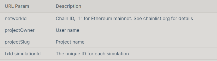 Your simulations will be saved, and a unique ID for each simulation is included in the response. It will be useful for fetching simulation details.