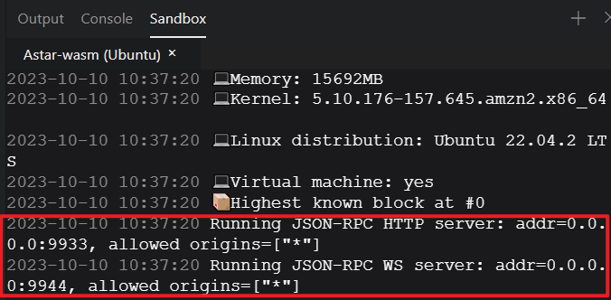 Wait for a few seconds until the Sandbox displays the following two lines.