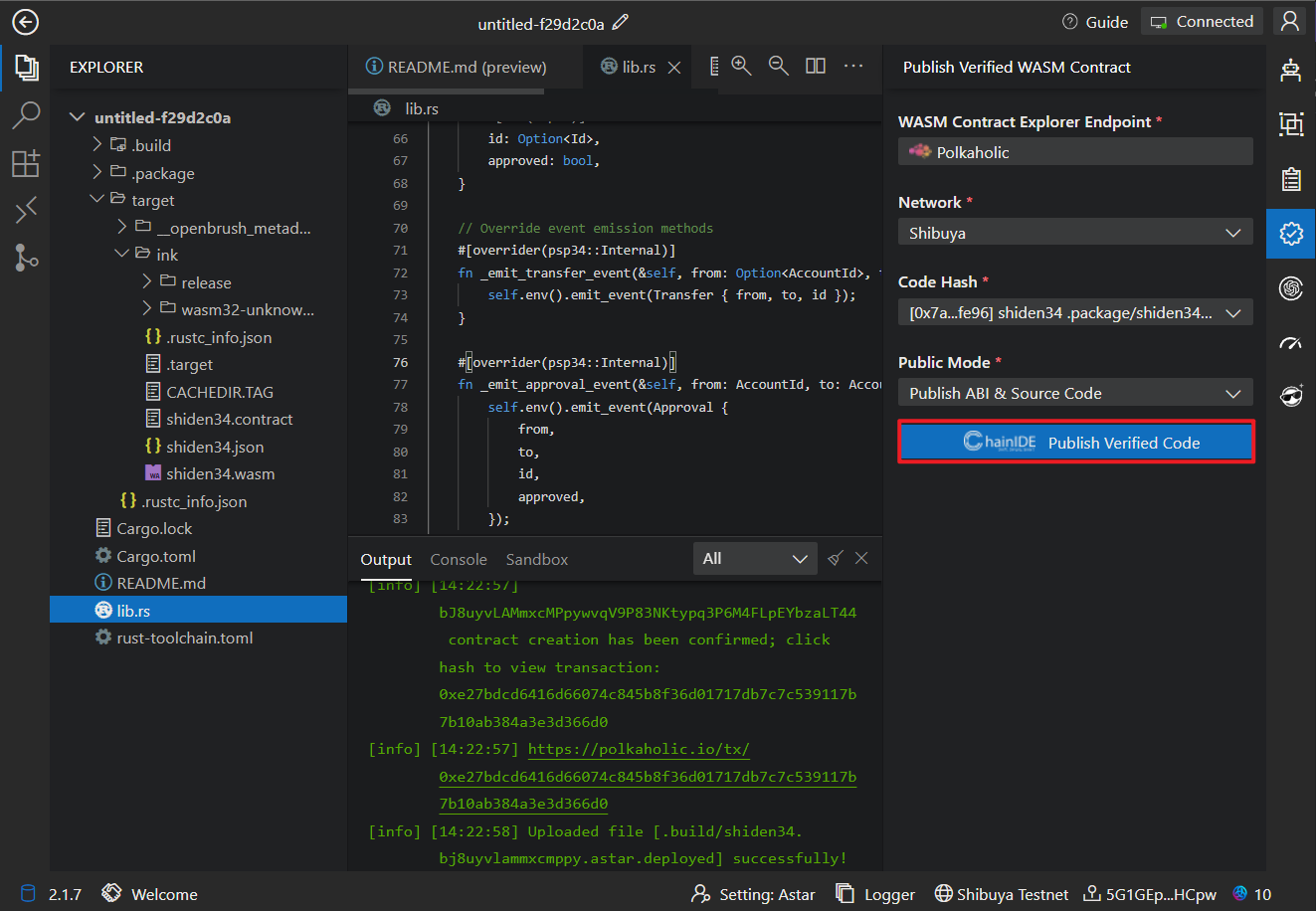 Contracts compiled using ChainIDE can be submitted to Polkaholic for contract verification.