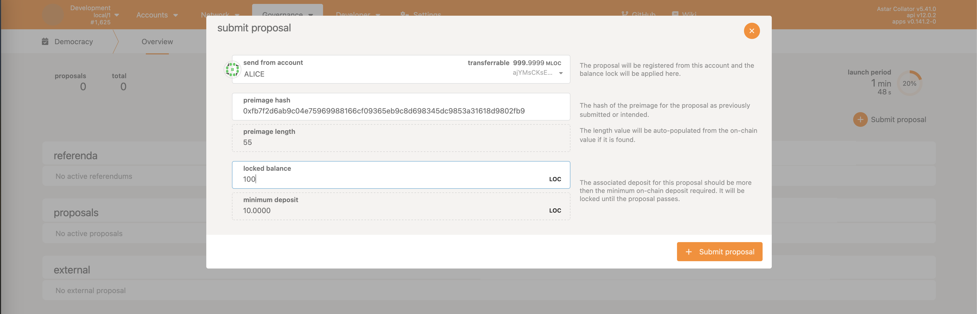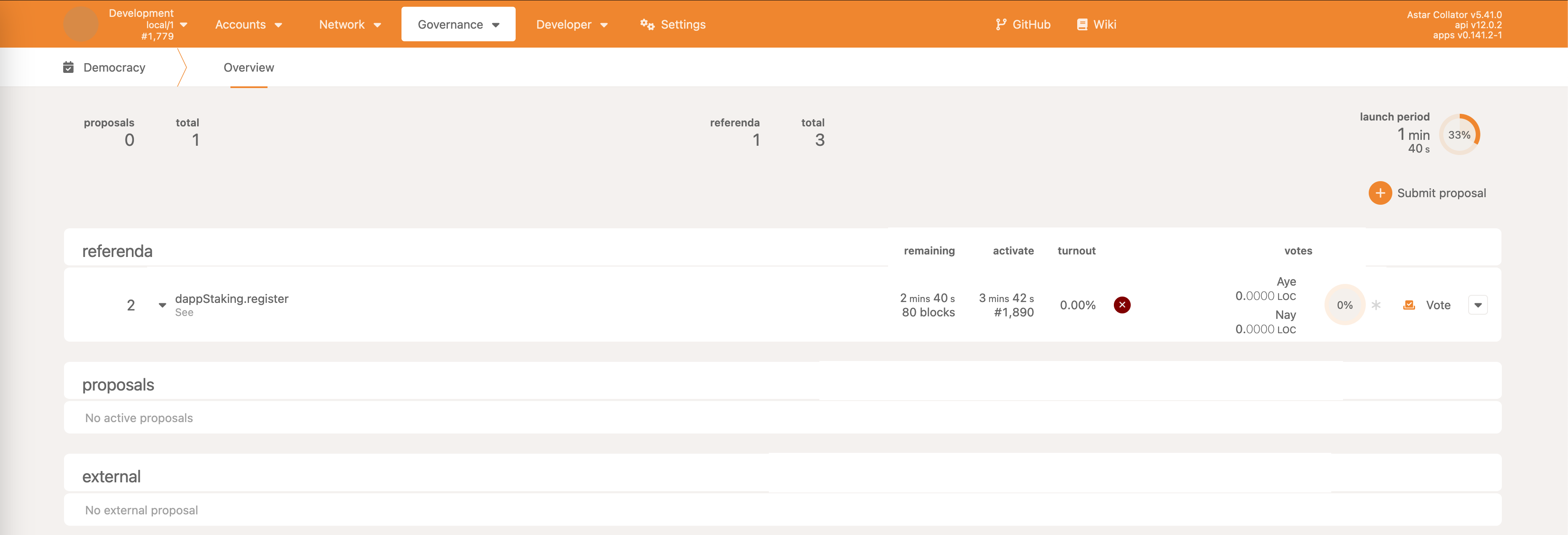 • Democracy->propose - make a proposal, reserving some ASTR as the deposit
