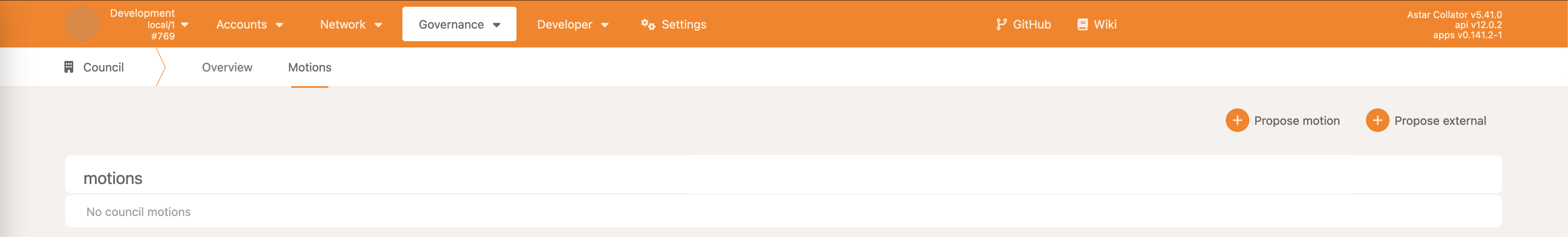 Once the Fast track action is complete, a new motion under the Governance -> Tech. Committee -> Proposals tab is created.