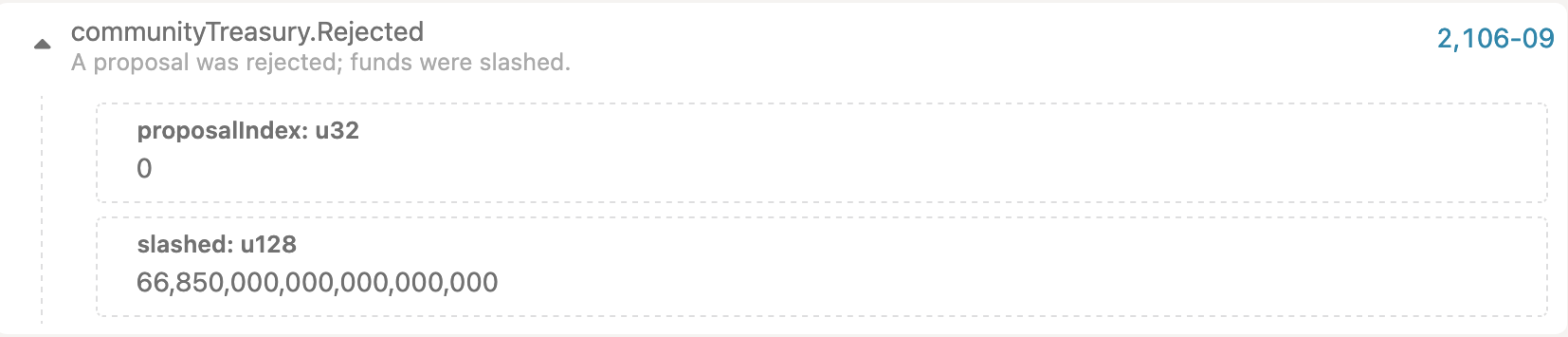 • Treasury->rejectProposal - reject the treasury spending proposal