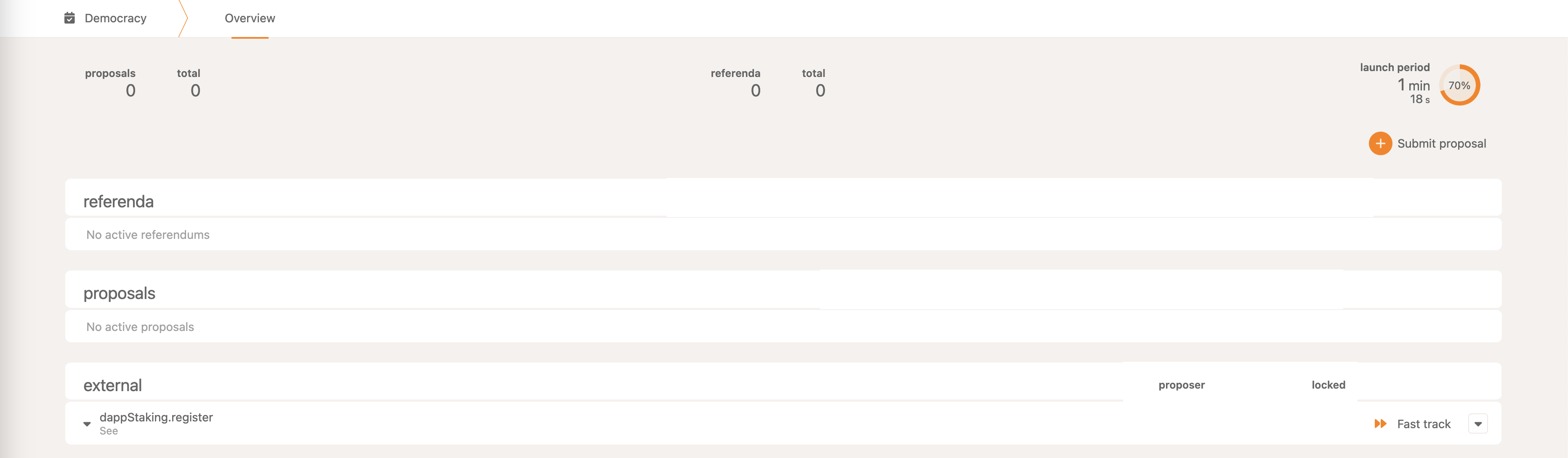 • Democracy->fastTrack - fast-tracks an external proposal
