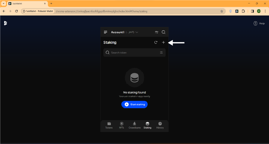 - Choose the account from which you would like to stake (if you are in all accounts mode)