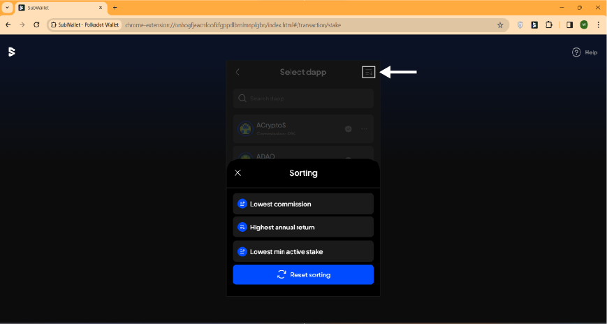In addition, you could use the sort function to find the most suitable dApp according to your needs. Click the sort icon on the upper right corner and choose your sorting criteria.