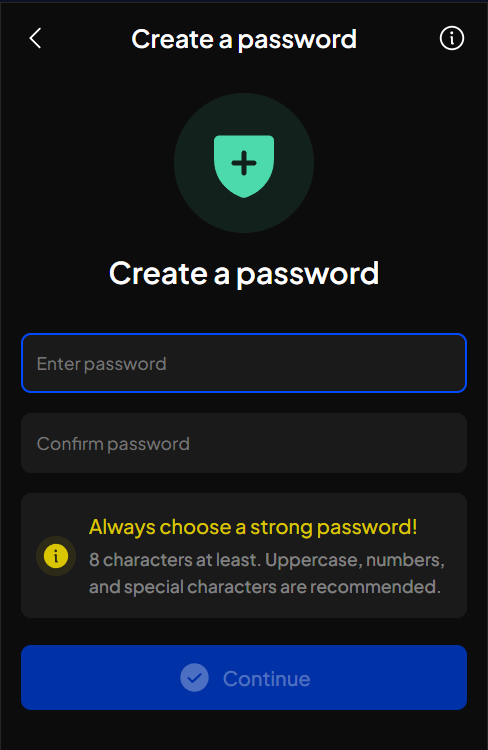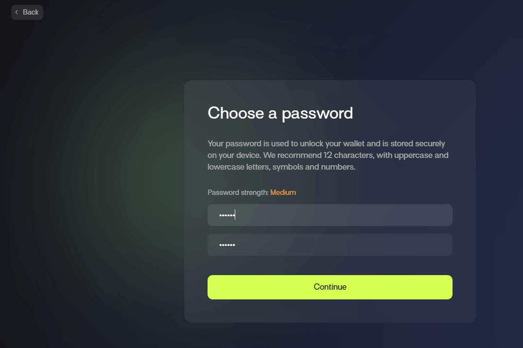 The password will be used to encrypt this account's information. You will need to re-enter it when using the account for any kind of outgoing transaction or when using it to cryptographically sign a message.