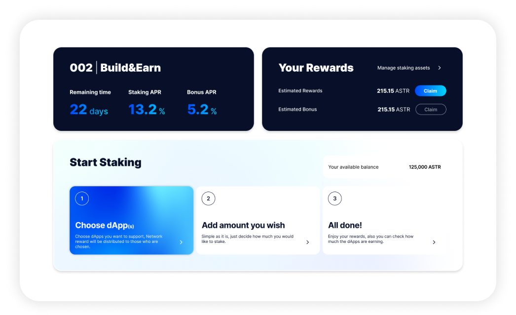 - Available: Estimated rewards earned during the Build&Earn subperiod;