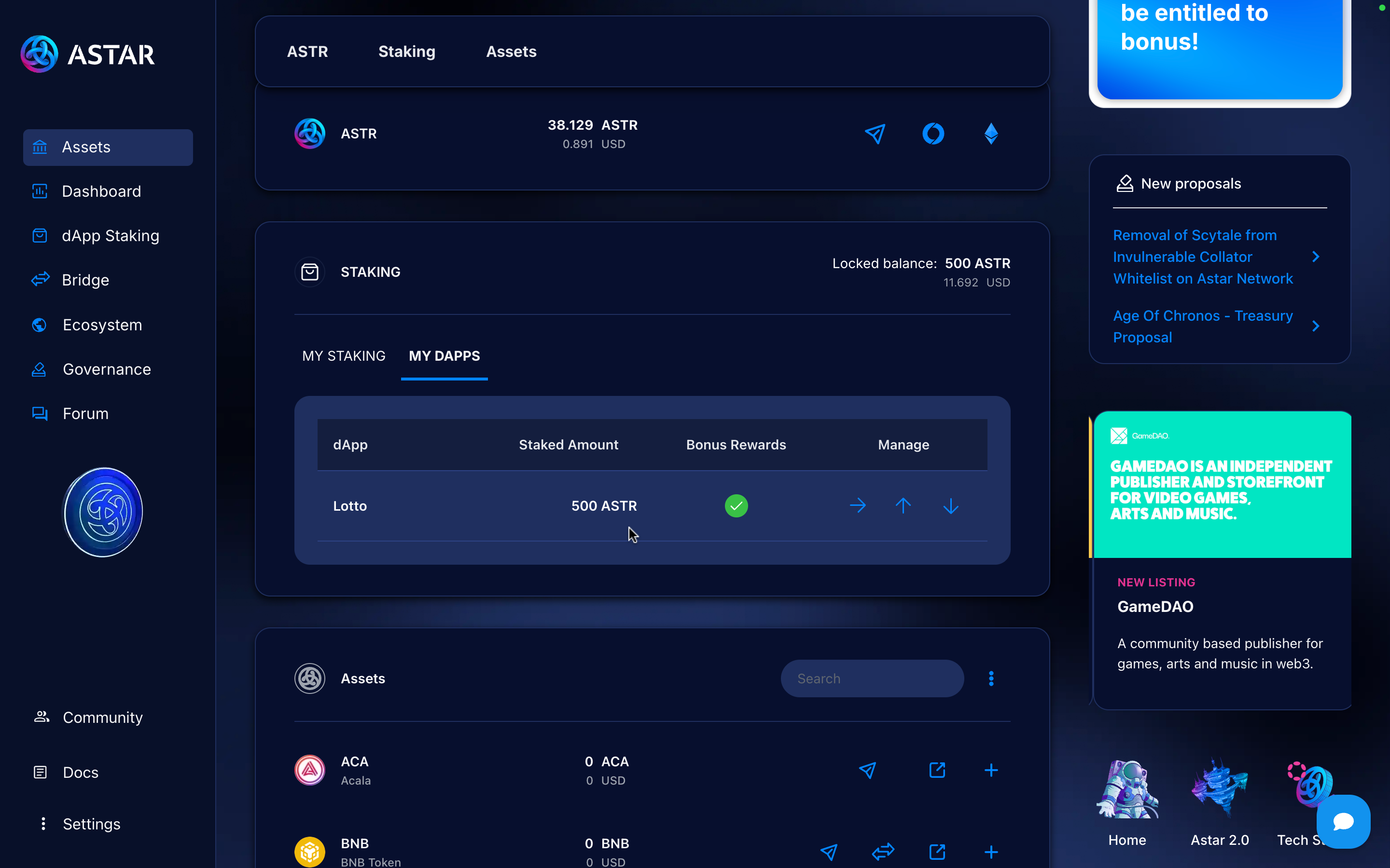 If you go to the My dApps section, you’ll be able to see the different dApps you staked on and their respective amounts.