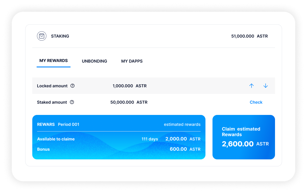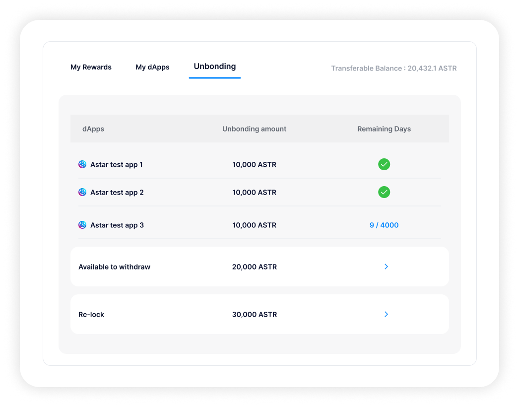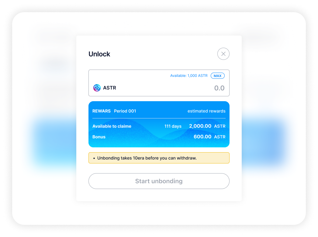 When you unlock or unstake your tokens from dApps Staking, you won’t earn rewards during the unlocking period!